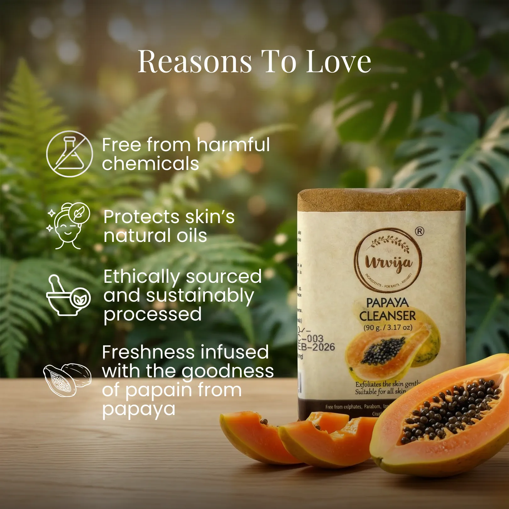 - Vegan and cruelty free papaya cleanser.