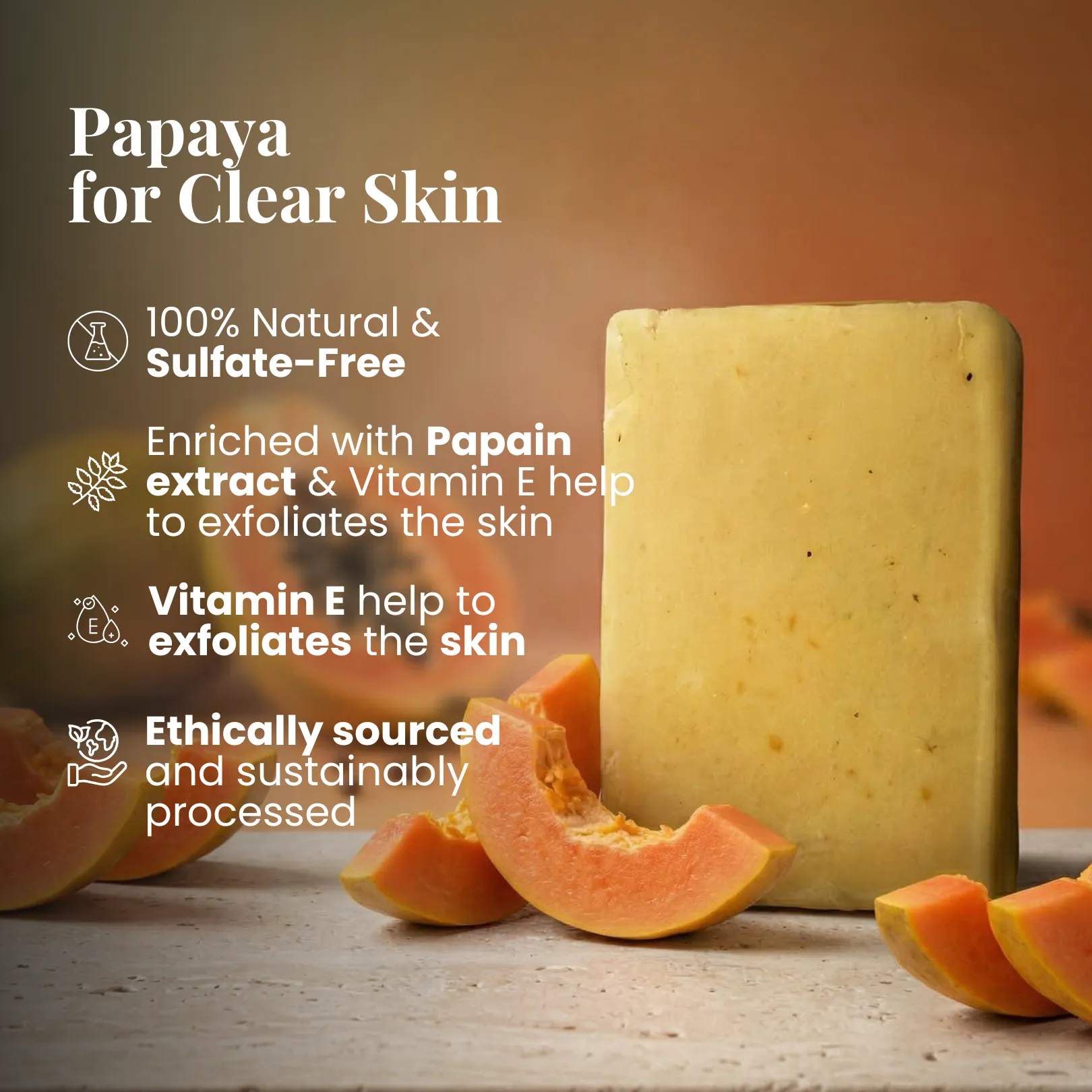 - This sulphate free papaya soap gently cleanses the skin.